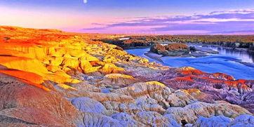新疆五彩滩,位于新疆布尔津县境内,与哈萨克斯坦隔河相望。这里的地貌奇特,色彩斑斓,被誉为“地球上的调色板”。五彩滩的奇特之处在于,它的岩石在阳光的照射下,会呈现出红、黄、绿、蓝、紫等多种颜色,美得让人惊叹。